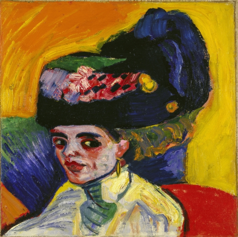Werktitel: Mädchen mit gelber Maske/Mädchen mit großem Federhut (Max Pechstein, 1910)