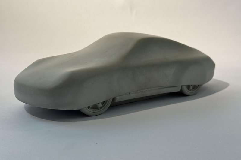 The Concrete Porsche is among Bechtold’s most iconic works. The sculpture is an exact replica of a Porsche 911, cast in solid concrete. An object that normally stands for speed, elegance, and technical perfection is rendered literally heavy, immobile, and monumental. Concrete—symbolic of permanence, the construction industry, and urban infrastructure—stands in radical contrast to the very idea of a sports car. By stripping the object of its function, Bechtold transforms it into a sculpture that negates mobility while simultaneously exposing and questioning its cultural glorification.