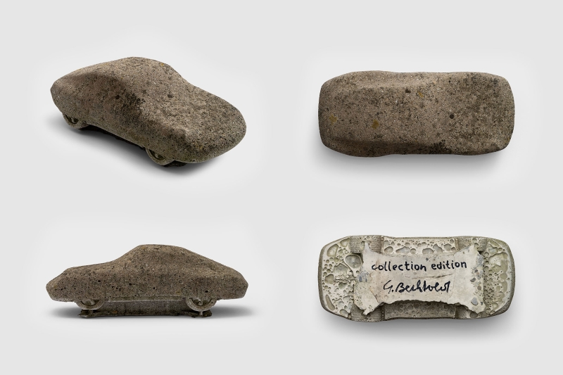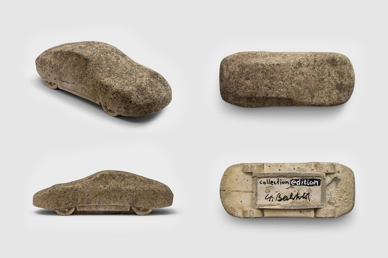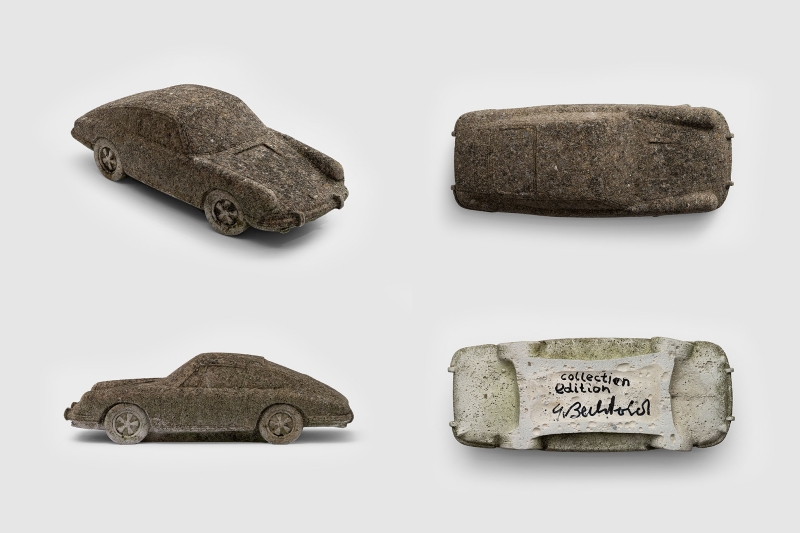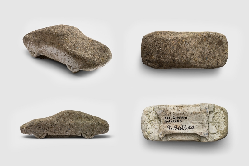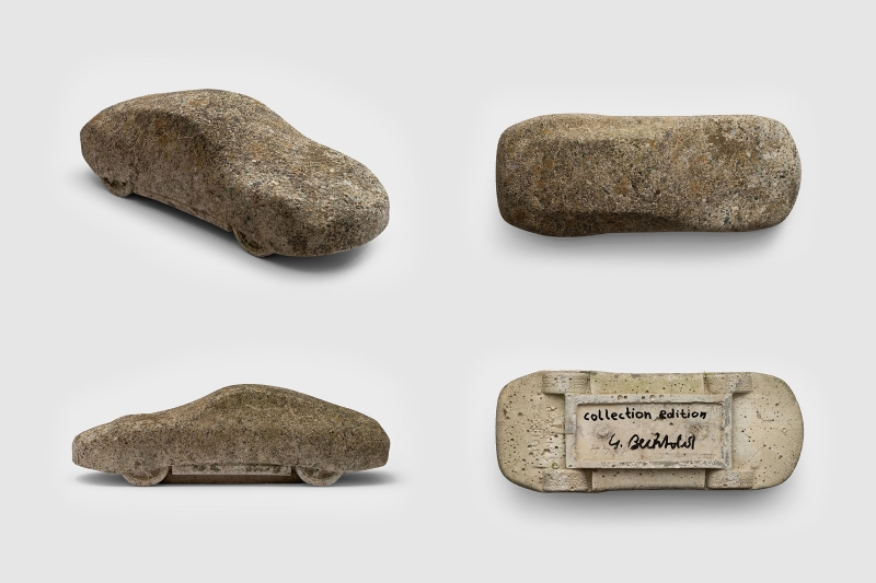 The Heidi Horten Collection presents an extraordinary new Collection Edition: eleven miniature versions of Gottfried Bechtold’s iconic concrete Porsche. Each sculpture is one of a kind—shaped by time and nature. Over a period of four to eight years, the artist exposed the works to the elements in the garden of his Bregenz studio, allowing each version to develop its own distinct patina and expressive character. This unique interplay between conceptual art and natural process makes every piece truly singular. All versions are delivered in specially designed packaging and are signed by the artist.