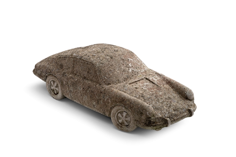 Eleven miniature versions of Gottfried Bechtold’s legendary Betonporsche. Each sculpture is one of a kind – shaped by time and nature. Over a period of four to eight years, the artist exposed the works to the elements in the garden of his Bregenz studio, allowing each version to develop its own distinctive patina and expressive character.