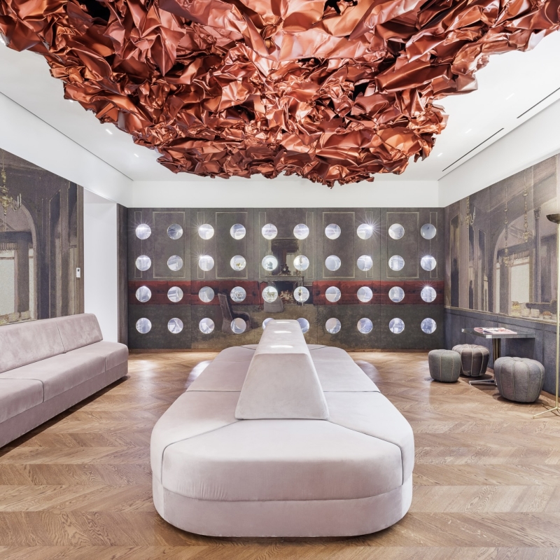 Kostbare Tapisserien und eine exquisite Moblierung. Der Tea Room lädt ein, „en miniature“ in die Welt von Heidi Horten einzutauchen. Direktorin Agnes Husslein-Arco und Künstler Markus Schinwald bieten exklusive Einblicke in das räumliche Setting.
